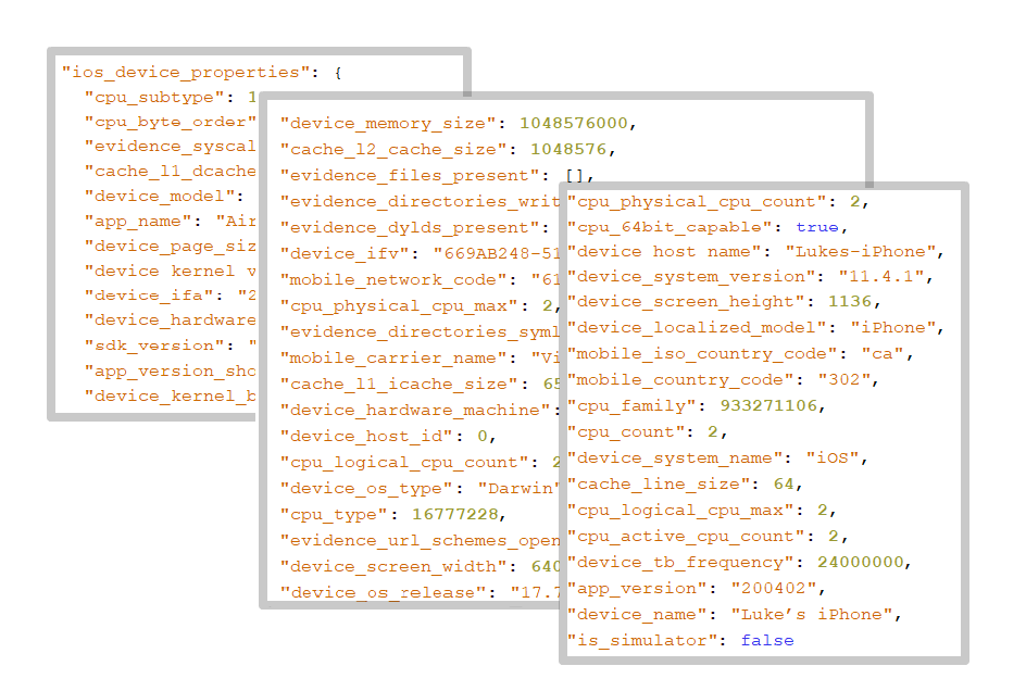 Sample of device data collected by Sift Science