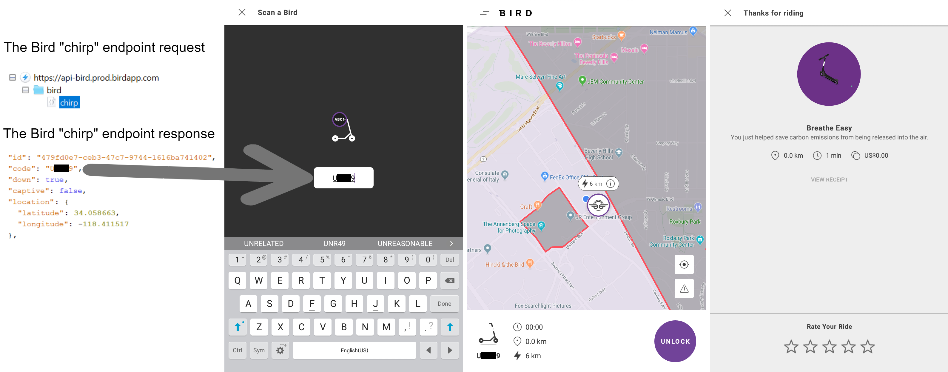 Leveraging code from "chirp" API response to remotely ride a Bird Scooter