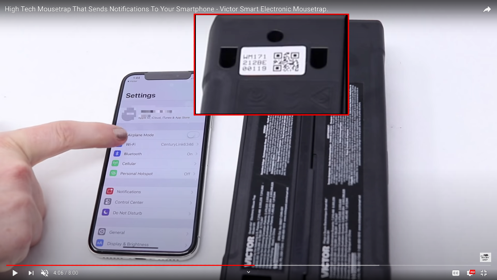Luckily there are unboxing videos for this very model and thankfully they show their QR code while setting up their own trap. Note: I'm not condoning hijacking these unboxers hardware, in this instance I stopped before I hijacked the mouse trap, but it could've been possible so be aware of this unboxers.